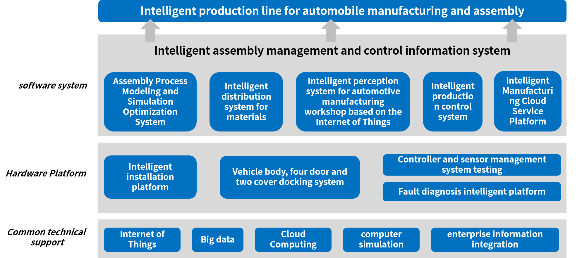 The intelligent system solution for welding and assembly production lines of white body and body parts mainly covers synchronous engineering of body process planning, body trial production, turnkey engineering, production line renovation, operation and maintenance management, and services. The welding and assembly process of the white body mainly includes spot welding, arc welding, unilateral welding, screw welding, rotary tapping riveting, self piercing riveting, flexible rolling, gluing, laser welding, etc.